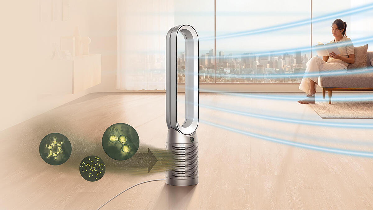 Dyson purifiers combine intelligent sensing with an advanced filtration system that captures gases2 and 99.95% of particles as small as 0.1 microns.1 And only Dyson purifiers have powerful Air MultiplierTM Technology to purify the whole room.3